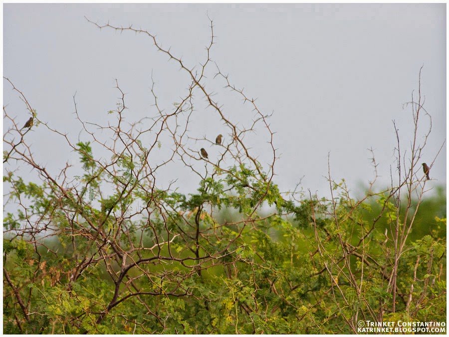 Sure enough, in time, a few of the buntings flew in and perched on the bushes nearest to us, giving me an opportunity for an improved photo.
