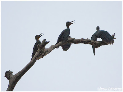 White-browed Shamas sang melodiously and Trilling Tailorbirds called loudly from the dark vegetation. Green Imperial Pigeons growled softly from the canopy above and a lone Yellow-breasted Fruit Dove hooted from somewhere behind the thick greenery of the trees.